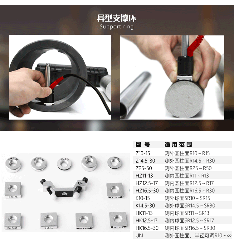 | 美泰便攜式硬度計(jì)異型支承環(huán)UN,適用于外圓柱面,半徑可調(diào),可替代標(biāo)準(zhǔn)支撐環(huán)使用。 | |